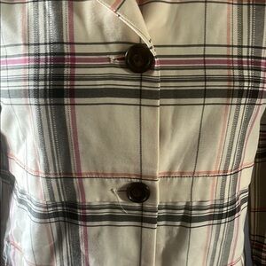 Merona Cream and Black Trench Coat with Plaid Design