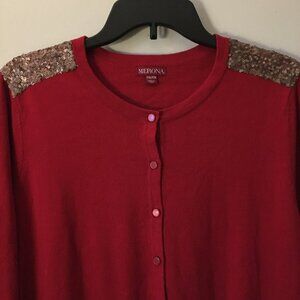 Merona Red with Gold Sequin Shoulders Button Down Cardigan