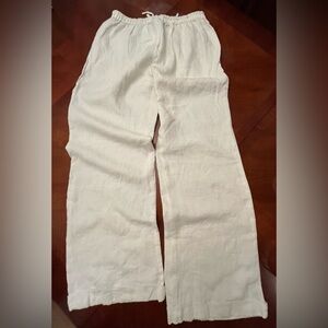 Merona Women’s White Linen Wide Leg Cuffed with side slit pockets. Elastic waist.