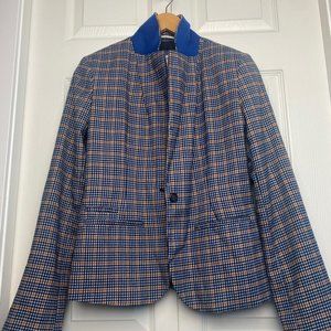 Sharp Merona plaid blazer, in blue, orange & white pattern.