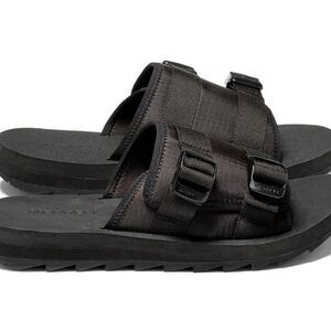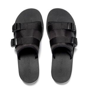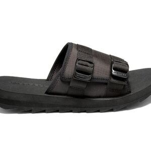 The Alpine Slide is a vegan aftersport model created with a recycled REPREVE webbing upper. REPREVE fibre is a transformational material made from recycled plastic bottles, embedding properties into the Alpine Slide such as adaptive warming and cooling, water repellency and reliable, durable quality at the fibre level.
