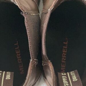 Stylish Merrell ankle boots. Rich brown leather. Durable and comfortable.