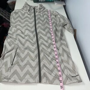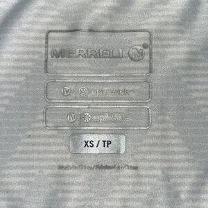 Merrell full zip top. Excellent, like new condition. SPF 50. Cute pleat detail on back and shoulders. Front pockets with zippers. Lightweight, no hood. See photos for measurements.