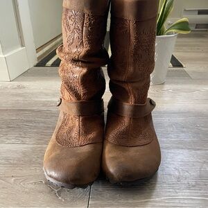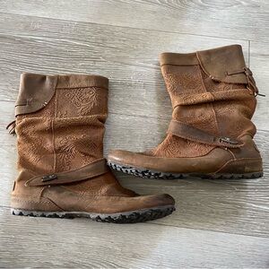 Merrell Haven Pull On Boots Slouchy Boho Bohemian Leather Suede Oak Brown