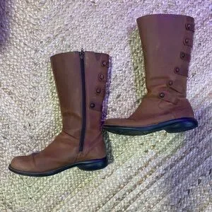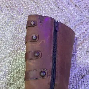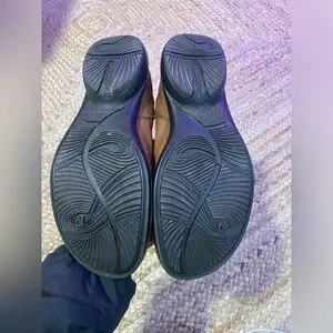 In good condition, very minimal signs of wear on the soles. Normal scratches shown on the upper leather material and some on the button designs. No visible rips or tears.