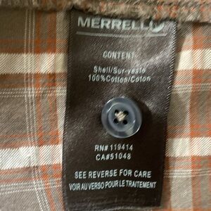 Merrell Men’s Short Sleeve Plaid Shirt with Snap Buttons and upf 30+.