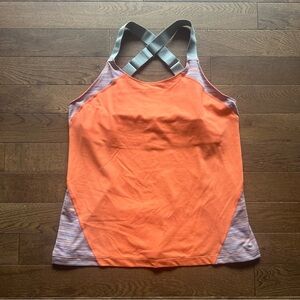 - Stylish and comfortable women's tank top in vibrant orange with gray accents. Perfect for casual outings or workouts.