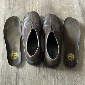 Great looking pair of Women's Merell Tetra Flex dark Brown leather port loafer. NO damage issues or signs of abuse; just light, slight and gentle wear. Clean footbed insole. NO stains or odors.. Some light burnishing in the heels. The uppers have a couple of VERY light and normal scuffs from walking. Please look at the pictures as they ARE the shoes you will receive.