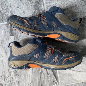 Velcro closure with some elasticized cording running up the front of the shoe to help them fit snugly.