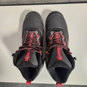 Fantastic boots that handle ice and snow very well with its Vibram Ice+ traction soles. They are waterproof and lined (warm). There is a ring in the front and a little ledge at the back heel to support snowshoes and gaiters. Very comfortable!