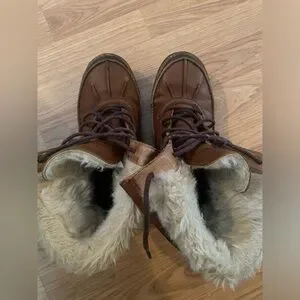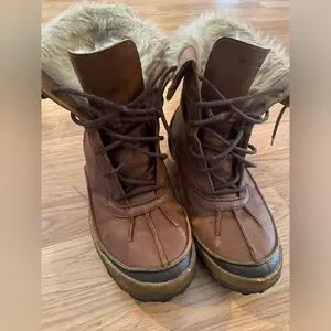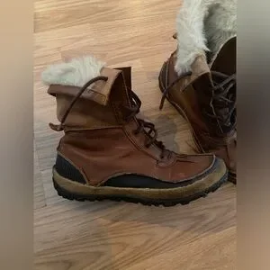 Laces have worn spots but could easily be changed out, along with a few other spots (see photos) but overall good condition and lots of life left. Very comfortable and warm for Canadian winters!