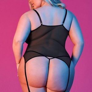 Luxuriate in fine fabrics that are velvety soft and beautifully conform to the lovely contours of the body. From the Exposed by Magic Silk collection, this style includes: A merry widow featuring adjustable shoulder straps with metal sliders and attached garter straps with metal clips, and a matching black and red lace G-string. One size fits mots curves