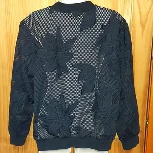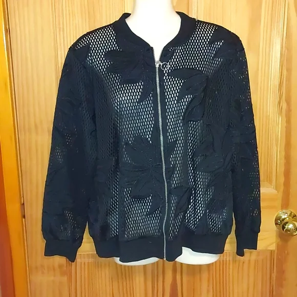 Very unique mesh zip up jacket. The perfect jacket to dress up or dress down.