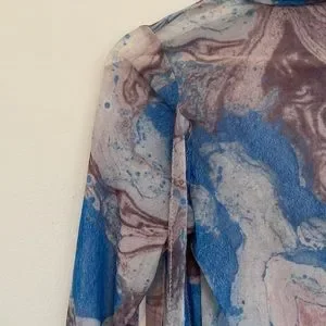 Liquid Pattern on Mesh Mini Dress with lots of Straps to tie in Different Ways, Mesh that is See Through, Size XSmall/Small, Never Worn