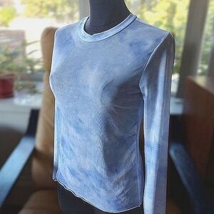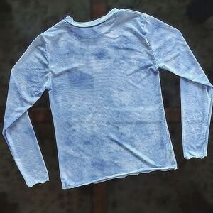 Mesh baby blue cloud print long sleeve crewneck t-shirt