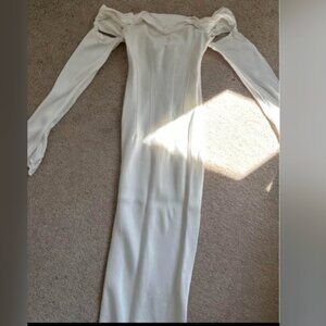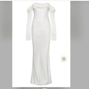 Off Shoulder Cowl Neck Maxi Dress - Twisted viscose fabric highlights the off-shoulder neckline. Flared sleeves with split cuffs and a stunning silhouette, adding texture and drama to the visuals.