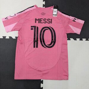 Messi #10 Inter Miami CF 2025/26 home pink jersey by Adidas. Features the signature pink design with black accents, official club crest, sponsor details, and Messi’s iconic number 10. Made with Adidas AEROREADY fabric for comfort and breathability. Brand new, never worn, with tags. Pickup available in Mississauga.