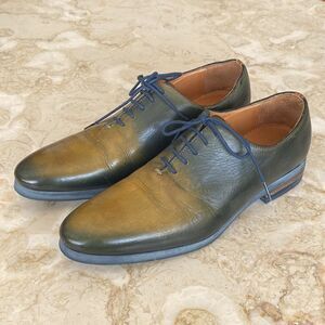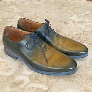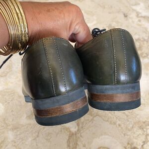 In very good preowned condition Messico handcrafted leather lace up derby shoes in stunning hand dyed green. Rubber soles for comfort, leather lined.