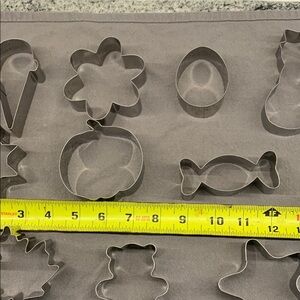 Set of metal cookie cutters in various shapes. Perfect for baking and crafting. Set of 10