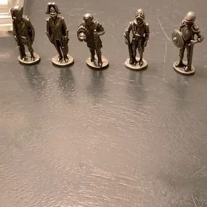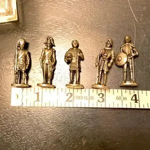 5 Miniature Soldiers Different styles of armour and uniforms. One has some corrosion at base. Priced Accordingly.