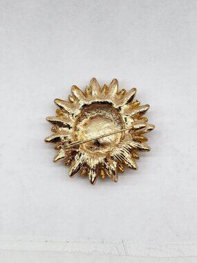 Stunning Metal & Rhinestone Sunflower Statement brooch. Gold, yellow, and Black Colours. 1 1/2 inches diameter aprox. Excellent overall preloved condition.