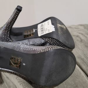 Unused in Box! Comes with extra heel edges. Le Chateau AB78 Sparkly Pewter Crystal Stud Heels Size 8.