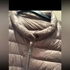 Stylish metallic puffer jacket with front pockets. Perfect for cold weather.