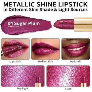 🆕 Metallic Shine Purple Lipstick Moisturizing Creamy Formula Vegan Lip Color