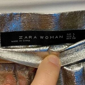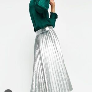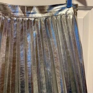 Pleated silver lamé midi skirt. Concealed side zipper. (2)