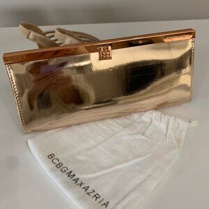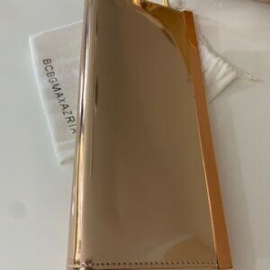 Clutch style. Magnetic clasp. Gold-peach pink metallic patent leather.