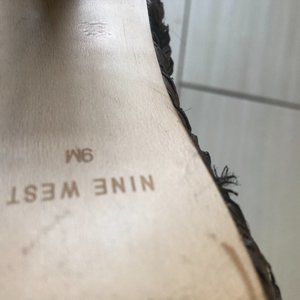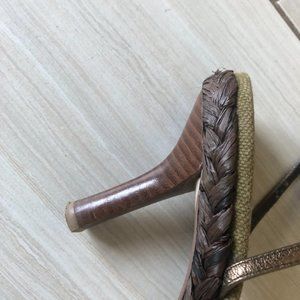 These are various shade of metallics with a woven base with a medium heel. They are in good condition.