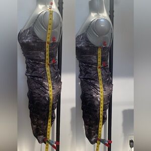 Metallic shimmery snake leopard print bodycon ruched fitted dress size XS