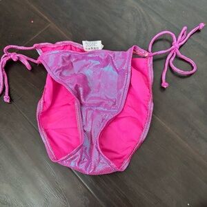 Bright and fun pink swim bottom perfect for pool days. Comfortable fit with adjustable ties.