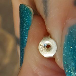 Earrings were handmade in Mexico meaning it lacks the precise cuts and angles as if it were made on a machine and favors uneven edges and finishes. Earrings are a Round Ball Stud Design with butterfly fasteners. However, I'm only able to locate a 925 on the butterfly backs and not the actual earrings. I do know the person for whom I'm selling this for and they do not wear consume jewelry, thus I know this to be either 925 or even 950 silver. However, I'm unable to reliability demonstrate that without the stamp. Thus, this earrings will be priced in the middle.