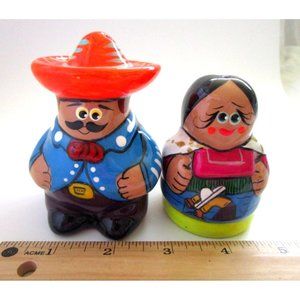 Mexican Hand Painted Talavera Pottery - Salt and Pepper Shakers Folk Couple
