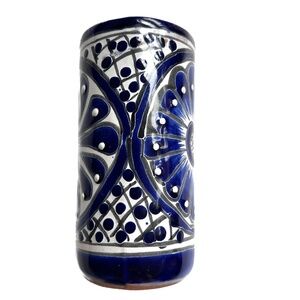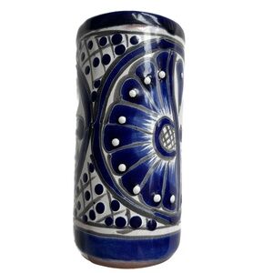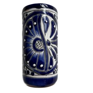 Mexican Pottery Vase Blue & White Hecho En Mexico 5 1/2" Tall Folk Floral Flower