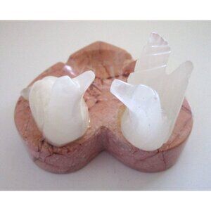 * White Alabaster Carved Birds on Stunning Pink Granite Stone Heart Shaped Ashtray (2) cigarettes