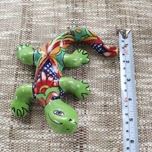 Set of 2 Hand Made, Hand Painted Bright Vibrant Colored Terracotta, Made in Mexico Talavera Figurines Statues, can be Wall Hung as well. Lounging Grasshopper with Antennae 8.5 inches in length and 5 inches at its widest and 1.25 inches in depth, Smiling Lizard 5.5 inches in length, 6.5 inches at its widest, 2 inches in depth. Very Good Vintage condition, no chips no cracks, no visible wear marks, Please see pictures for further details