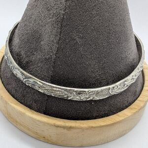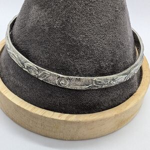 Vintage Silver Mexico Bangle Bracelet with leaf design... Non- magnetic and Marked Mexico. pre-owned.. please view photos for measurements