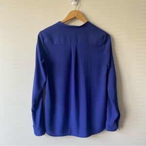 Mexx Band Collar Button Up Roll Up Sleeves Blouse Royal Blue