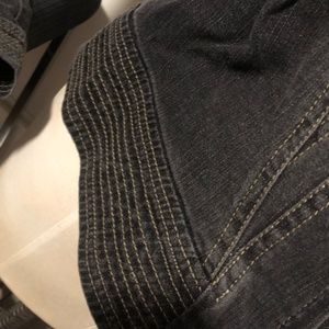 Stylish black bomber jacket. Features intricate stitching. Perfect for casual wear.