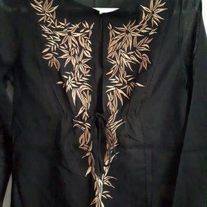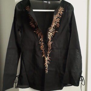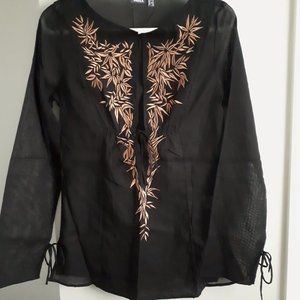 Mexx Black Sheer Top with Golden Embroidery