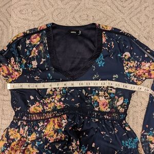 Gorgeous Boho styled Liberty floral dress ditsy deep blue color with wide sleeves