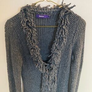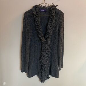 Mexx Charcoal Gray Fringed Cardigan Sweater size Small