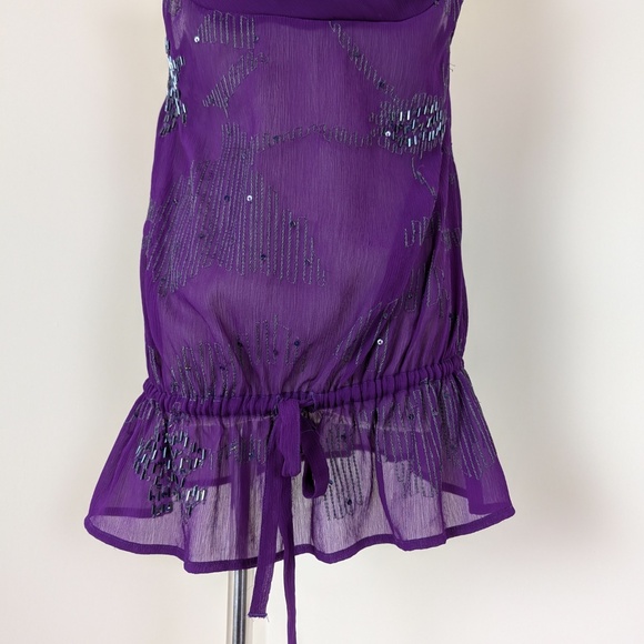 Mexx Drop Waist Camisole Tank Drawstring Cowl Neck Spaghetti Straps Sheer