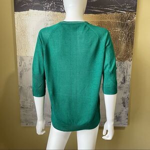 Beautiful rich green sweater with half sleeves and v neckline. Neckline has silver threading to add some shine. Excellent used condition.