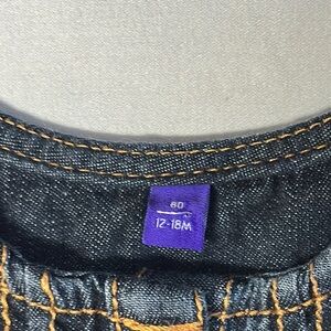 Stylish denim DRESS featuring eye-catching red accents and front pockets. Perfect for casual outings.