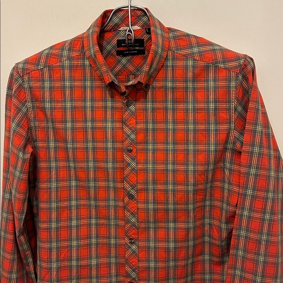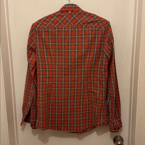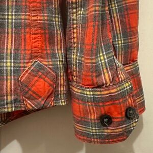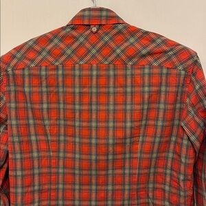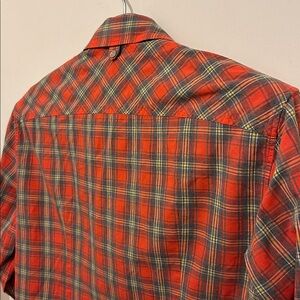 Nothing amiss with this casual plaid from Mexx. The colours are bright and there are no physical issues with it at all. No rips or tears or fading. No stains, no fading. Some neat little touches like the rear collar button and snaps in some spots instead of buttons.