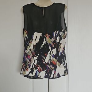 Mexx Sheer Sleeveless Color Splash Top Black Size 12