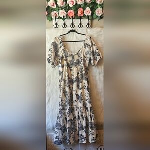 Mexx Voile Cream/Black Floral 100% Cotton Peasant Dress